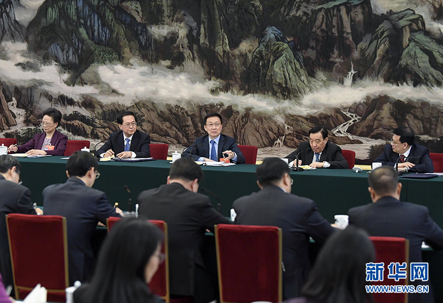 3月7日,中共中央政治局常委、國務院副總理韓正參加十三屆全國人大二次會議浙江代表團的審議。 新華社記者 高潔 攝