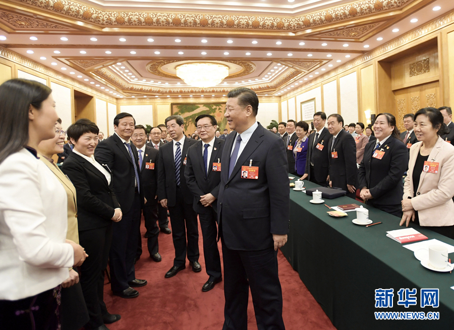 3月8日,中共中央總書記、國家主席、中央軍委主席習(xí)近平參加十三屆全國人大二次會議河南代表團的審議。在“三八”國際勞動婦女節(jié)到來之際,習(xí)近平代表黨中央,向參加全國兩會的女代表、女委員、女工作人員,向全國各族各界婦女,致以節(jié)日的祝賀和美好的祝福。這是習(xí)近平同女代表親切交談。新華社記者 李學(xué)仁 攝