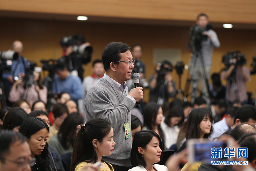 十三屆全國人大二次會議新聞中心于3月10日(星期日)上午10時30分在梅地亞中心新聞發布廳舉行記者會,邀請中國人民銀行行長易綱,副行長陳雨露,副行長、國家外匯管理局局長潘功勝,副行長范一飛就“金融改革與發展”相關問題回答記者提問。圖為路透社記者提問。新華網/中國政府網 劉廈 攝
