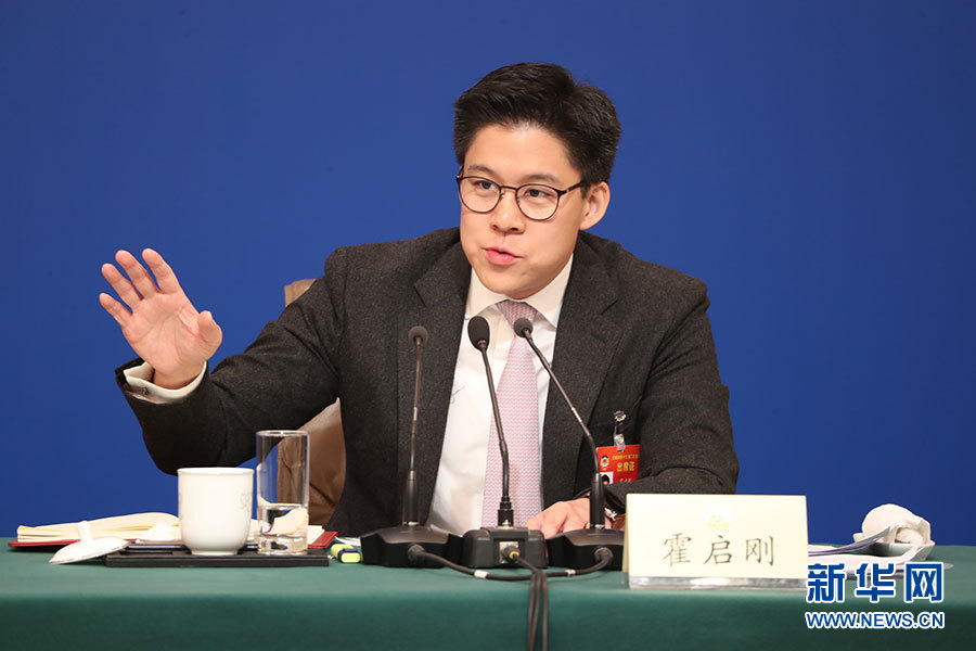 全國政協十三屆二次會議3月10日(星期日)上午8:45在梅地亞兩會新聞中心舉行記者會,邀請5位政協委員就“新時代政協履職”回答記者提問。新華網、中國政府網進行現場直播。圖為全國政協委員、中國香港體育協會暨奧林匹克委員會副會長、霍英東集團副總裁霍啟剛。新華網/中國政府網 陳杰攝