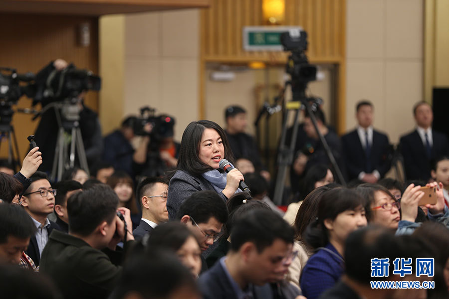全國(guó)政協(xié)十三屆二次會(huì)議3月10日(星期日)上午8:45在梅地亞兩會(huì)新聞中心舉行記者會(huì),邀請(qǐng)5位政協(xié)委員就“新時(shí)代政協(xié)履職”回答記者提問(wèn)。新華網(wǎng)、中國(guó)政府網(wǎng)進(jìn)行現(xiàn)場(chǎng)直播。圖為香港經(jīng)濟(jì)導(dǎo)報(bào)記者提問(wèn)。新華網(wǎng)/中國(guó)政府網(wǎng) 劉廈攝