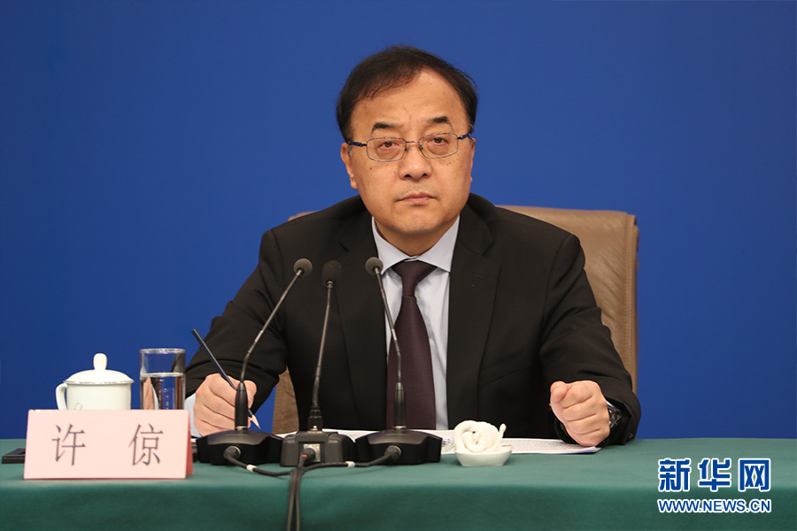 十三屆全國人大二次會議新聞中心3月11日(星期一)8時45分在梅地亞中心新聞發布廳舉行記者會,邀請科技部部長王志剛、副部長李萌、戰略規劃司司長許倞、政策法規與創新體系建設司司長賀德方、資源配置與管理司司長張曉原就“加快建設創新型國家”相關問題回答中外記者提問。圖為科技部戰略規劃司司長許倞。新華網/中國政府網?陳杰 攝