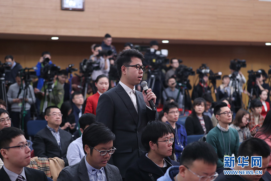 十三屆全國人大二次會議新聞中心3月11日(星期一)8時45分在梅地亞中心新聞發(fā)布廳舉行記者會,邀請科技部部長王志剛、副部長李萌、戰(zhàn)略規(guī)劃司司長許倞、政策法規(guī)與創(chuàng)新體系建設司司長賀德方、資源配置與管理司司長張曉原就“加快建設創(chuàng)新型國家”相關問題回答中外記者提問。圖為新華社記者提問。新華網(wǎng)/中國政府網(wǎng) 劉廈 攝