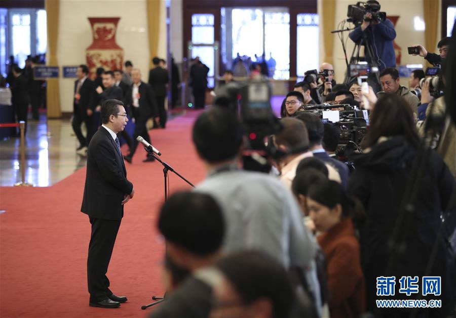 3月12日,十三屆全國人大二次會議在北京人民大會堂舉行第三次全體會議。這是國家知識產(chǎn)權(quán)局局長申長雨在“部長通道”接受采訪。 新華社記者金立旺攝