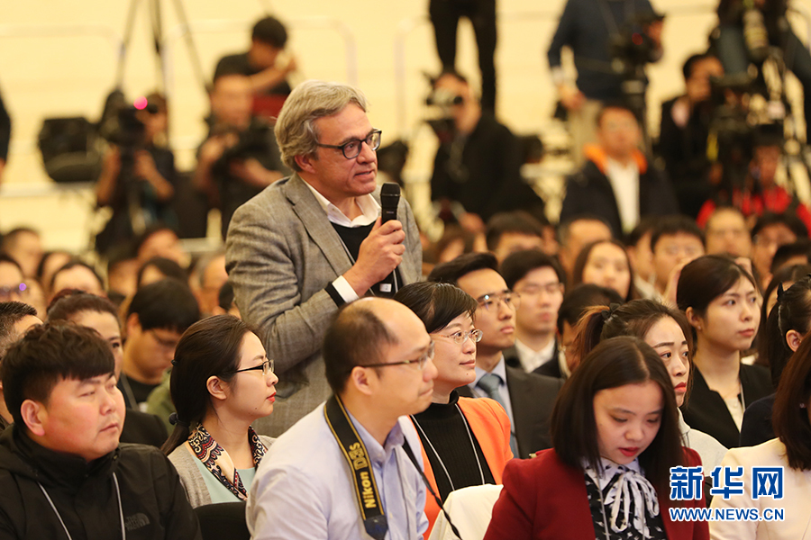3月15日上午十三屆全國人大二次會議閉幕后,國務(wù)院總理李克強(qiáng)在人民大會堂三樓金色大廳會見采訪十三屆全國人大二次會議的中外記者并回答記者提出的問題。圖為西班牙記者提問。新華網(wǎng)/中國政府網(wǎng)?陳杰 攝