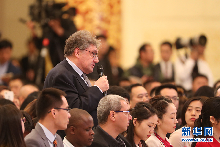 3月15日上午十三屆全國人大二次會議閉幕后,國務(wù)院總理李克強在人民大會堂三樓金色大廳會見采訪十三屆全國人大二次會議的中外記者并回答記者提出的問題。圖為塔斯社記者提問。新華網(wǎng)/中國政府網(wǎng) 劉廈 攝