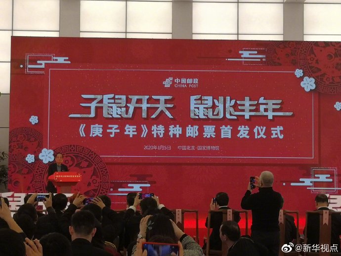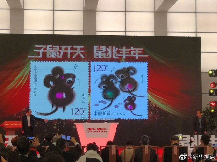 《庚子年》特種郵票首發儀式5日在中國國家博物館舉行。鼠年生肖郵票第一圖名為“子鼠開天”,第二圖為“鼠兆豐年”。郵票設計者為著名藝術家韓美林先生。畫面運用裝飾小寫意的畫法,結合傳統國畫的渲染技藝,展現了生肖鼠的可愛萌動,預示著偉大祖國的繁榮富強。5日起,集郵愛好者在全國指定郵政網點、集郵網廳、中國郵政手機客戶端和中國郵政微郵局集郵微信商城均可購買《庚子年》特種郵票。(記者趙文君)?