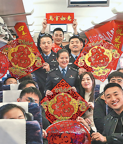 太原鐵路公安處民警在太原開(kāi)往西安的高鐵上宣傳安全知識(shí),與旅客互動(dòng)。趙 彤?dāng)z(影像中國(guó))