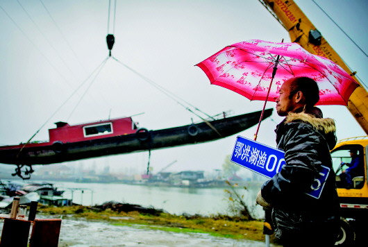 2019年12月25日下午,位于長江中游的湖北省洪湖市螺山鎮長江捕撈村陰雨綿綿,起重機、挖掘機、切割工具發出的轟鳴聲不絕于耳,57歲的漁民夏明星看著他祖祖輩輩謀生的家伙什——一艘10多米長的鐵制漁船被拆解,久久不愿離去,眼里不自覺地泛起了淚花。
