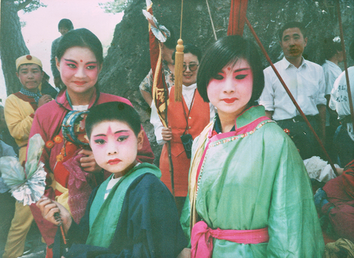 說到跑花會,家住宣武門外誠實胡同的吳寶華師傅上世紀八十年代經營了一家字號“勞動同樂”,專門在北京廟會上表演舞獅、耍中幡、踩高蹺、跑旱船、騎驢和大頭娃娃。表演者都是一家人,分工明確,還有人專門負責操持響器、推鼓架、看攤。一天表演兩場,收入頗豐。吳家曾經逢年過節在京西妙峰山立旗舍粥,可見一斑。