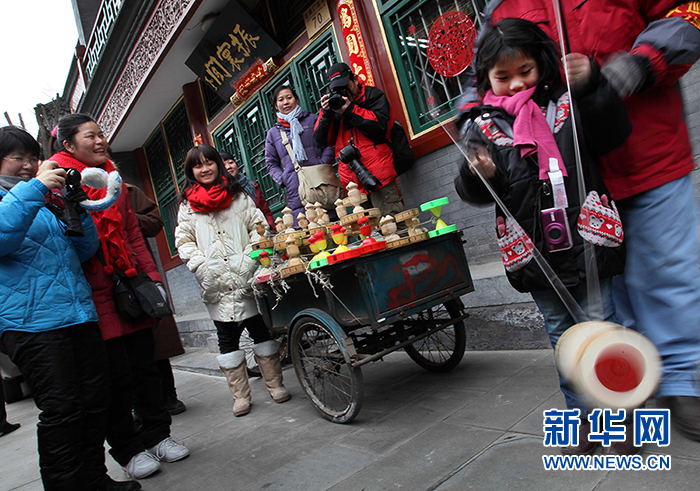 2014年2月4日,一名女孩在廠甸廟會上挑選老北京手工藝品。(圖片來源:新華社 記者郝麗穎 攝)
