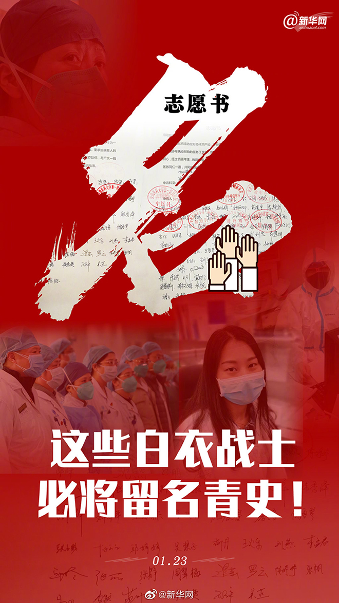 “我深知這場戰役的艱巨性”“下一站天門南,我下車回武漢”“我報名”……新型冠狀病毒肺炎疫情防控形勢嚴峻,不斷攀升的數字讓人揪心、痛心。但這些天,全國各地那些醫護人員的話,常常讓我們熱淚盈眶!1月23日,又見安徽百余名醫護人員在志愿書上簽名,請求去一線抗擊新型肺炎。張慧、孫朋、劉平平、沈佳佳、方芳……一個個普通的名字,卻讓人肅然起敬!他們也是普通人,也是某個人的父母或孩子。但現在,他們是醫生,是護士,是白衣戰士!這場戰役必將勝利,也請你們務必好好保護自己,平安歸來。(趙剛/文 盛瑞麗/圖)