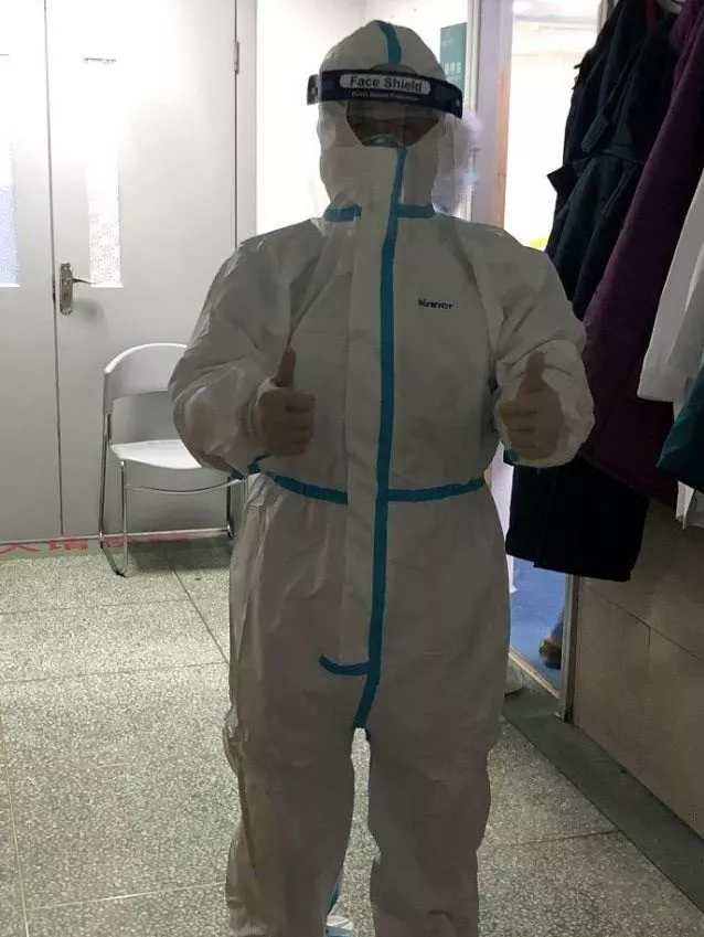 童朝暉身著防護服。