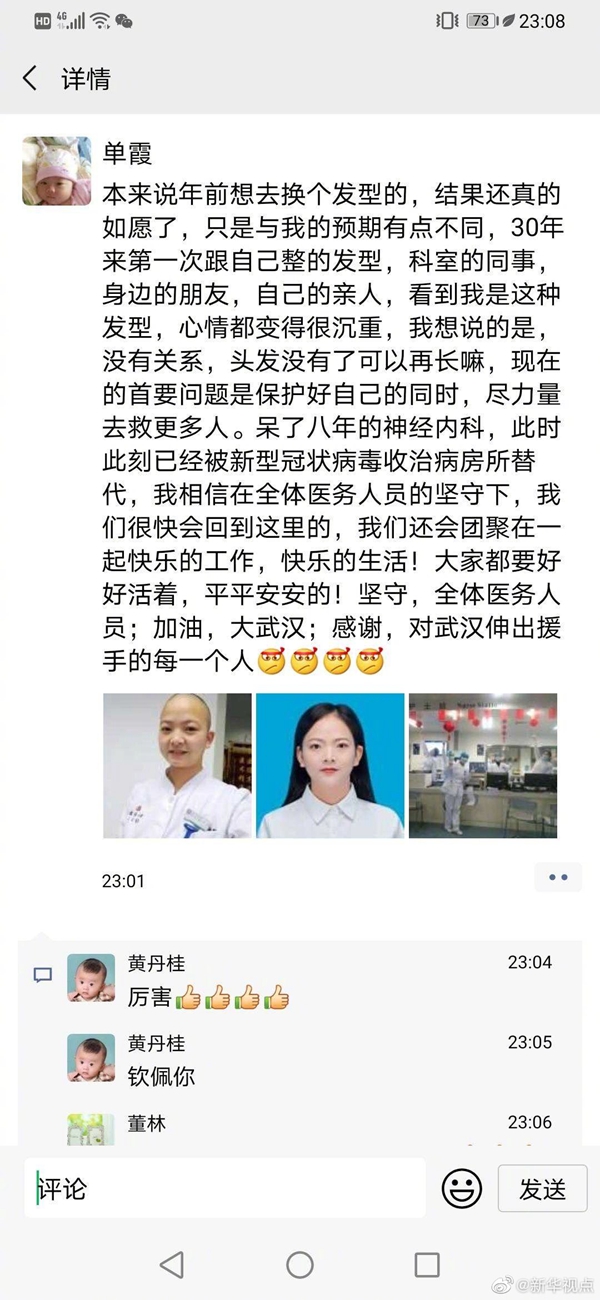 用我及腰長發,換你健康平安:武漢人民醫院出了個“光頭護士”-新華網
