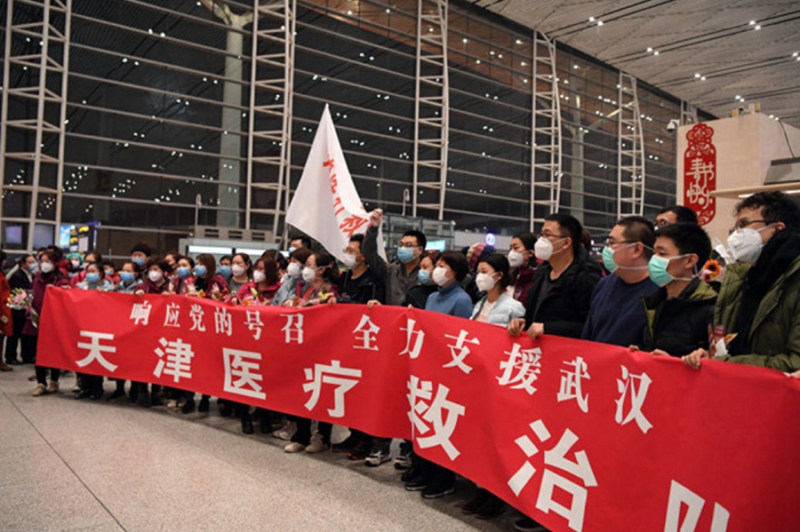 1月28日當天,來自新疆、甘肅省及廣東、上海市第二批等21支醫療隊,共計2287名醫務人員緊急馳援湖北。