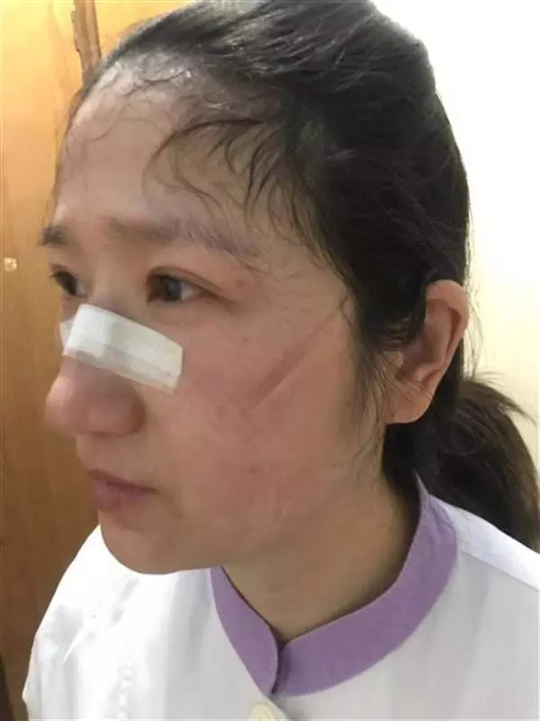連續穿戴防護服6個小時,臉上留下深深的“最美印痕”。