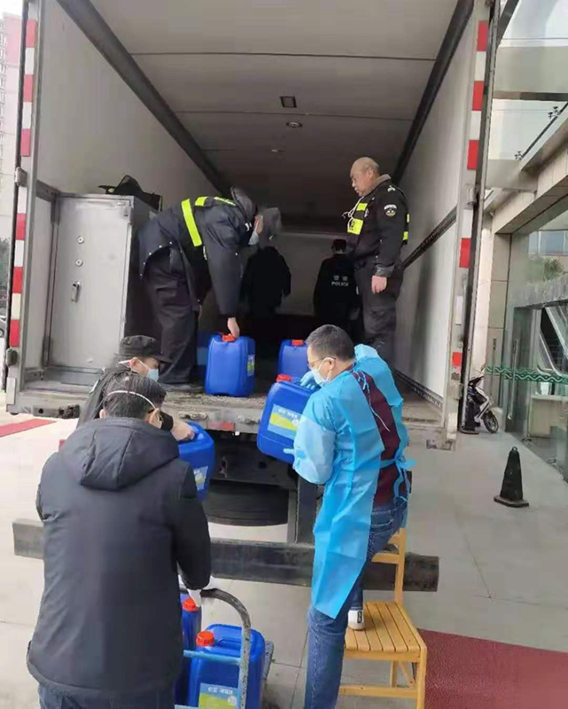 科技公司已經(jīng)下班,只留下2名員工,阜寧郵政的4名員工就成了主力,大家一起努力,花了3個小時總算將500箱共10噸的消毒液和一些醫(yī)護用品裝上了車。