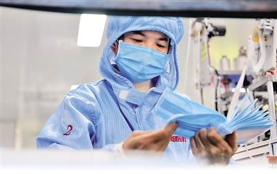 近日,河南省長(zhǎng)垣市的醫(yī)用防護(hù)用品生產(chǎn)企業(yè)爭(zhēng)分奪秒全力趕制醫(yī)用產(chǎn)品。圖為工作人員在生產(chǎn)車(chē)間內(nèi)加工口罩。新華社發(fā)(郝源攝)