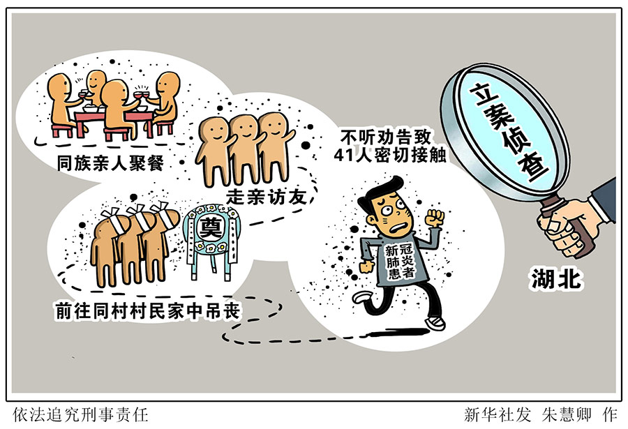 今年1月21日,徐某華駕車載其妻子、兒子、姐姐從武漢返回宣恩過(guò)年。徐某華回村后,村干部到其家中宣傳預(yù)防新型冠狀病毒知識(shí)以及相關(guān)政策,并與其簽訂承諾書。但徐某華不聽(tīng)勸告,先后與同族親人聚餐、走親訪友,還前往同村雷某家中吊喪。2月1日,徐某華自覺(jué)身體不適到椿木營(yíng)鄉(xiāng)衛(wèi)生院診治,2月3日被確診為新冠肺炎患者。