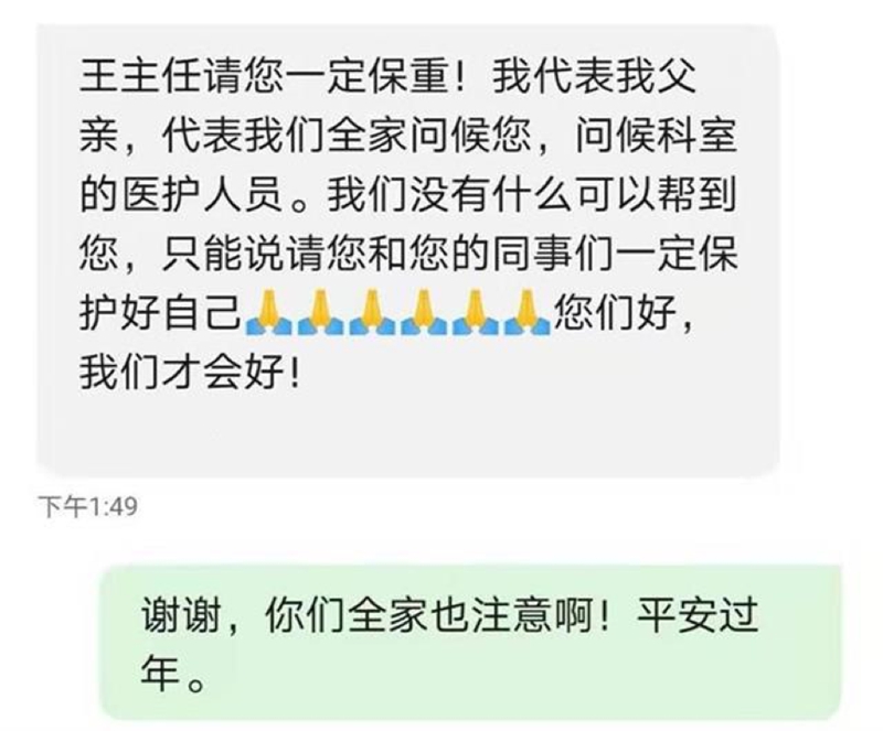 王醫生收到老患者的暖心短信