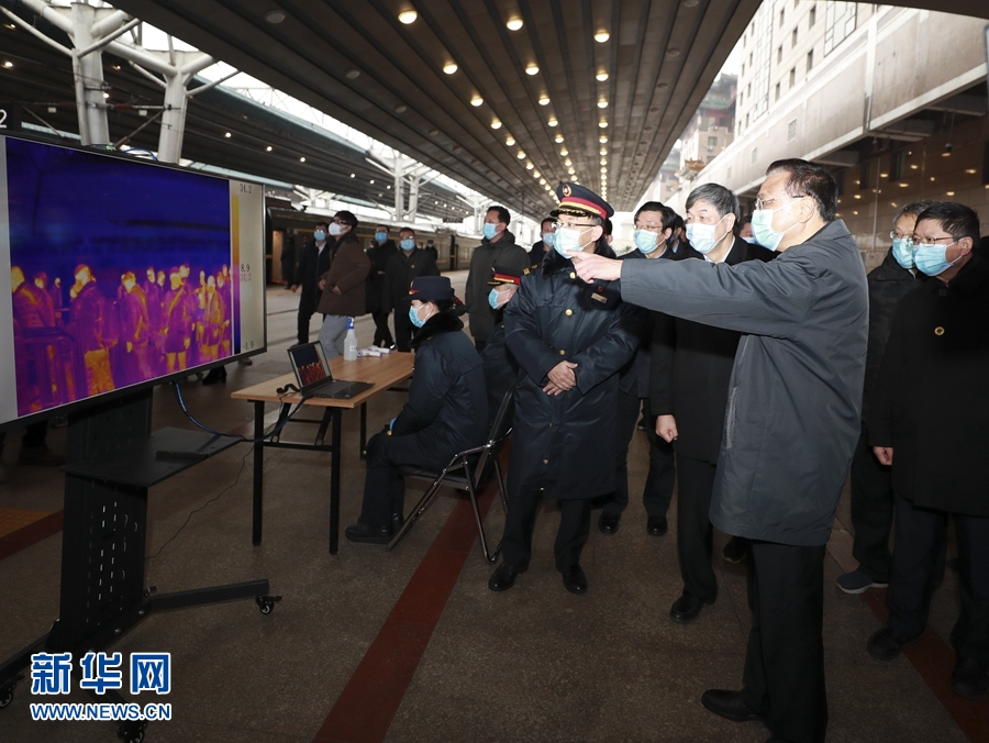 2月14日,中共中央政治局常委、國務(wù)院總理、中央應(yīng)對新冠肺炎疫情工作領(lǐng)導(dǎo)小組組長李克強(qiáng)赴北京西站考察有序錯峰返程和新冠肺炎疫情防控工作。 這是李克強(qiáng)察看車站紅外測溫設(shè)施運(yùn)行情況。 新華社記者 丁林 攝