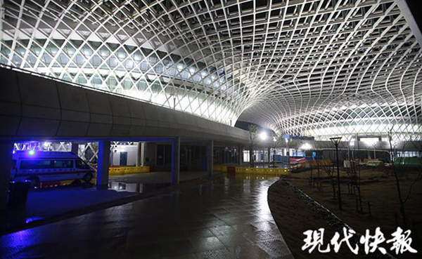 當晚 9 點,現代快報記者在現場看到,位于大花山戶外運動中心的江夏方艙醫院仍然亮著燈,不斷有車輛將患者轉運至此。醫護人員在場館內,將患者安排到相應的床位,并詢問病情。