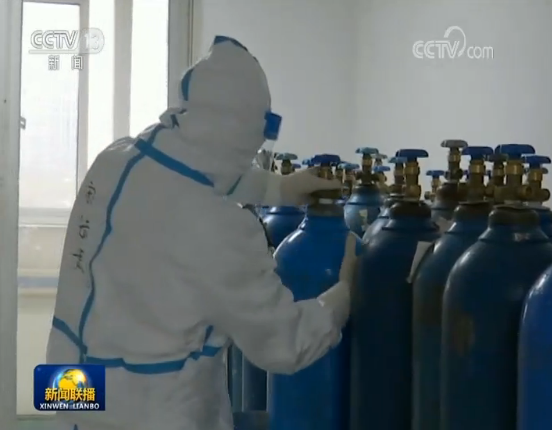 武漢市金銀潭醫(yī)院重癥監(jiān)護室護士 宋婧媛:他們(病人)用的是高流量氧氣,濃度需要很大,一罐氧氣只能用半個小時。一白天一晚上每個病人大概要用20多瓶將近30瓶。