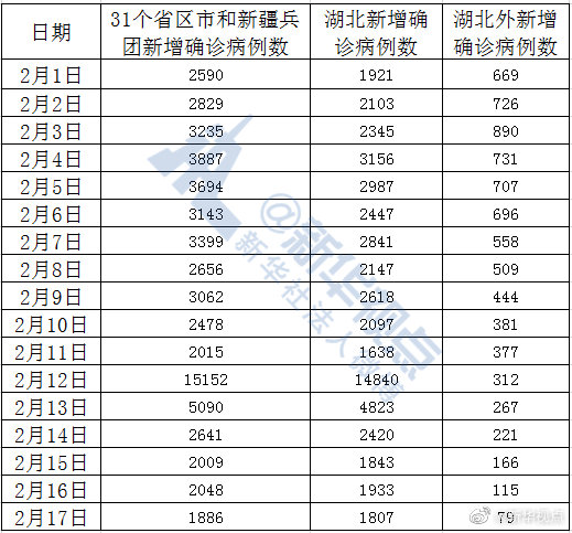 2月17日,31個(gè)?。ㄗ灾螀^(qū)、直轄市)和新疆生產(chǎn)建設(shè)兵團(tuán)報(bào)告新增新冠肺炎確診病例1886例,湖北新增確診病例1807例。這就是說,除湖北外的30個(gè)省區(qū)市和新疆生產(chǎn)建設(shè)兵團(tuán)昨日新增確診79例,這是自2月3日來新增病例到達(dá)高點(diǎn)890例以來的首次兩位數(shù)報(bào)告,也是第14連降。?