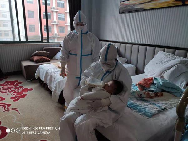 “我行”“讓我去”“讓我來”……一時間,安慶市迎江區醫衛工作者的微信群里迎來了幾十名爭當“臨時媽媽”的醫生護士。在隔離醫學觀察點,雖然不是救治確診病人的抗“疫”一線,但身處隔離區,不排除會有被感染的風險,可她們卻義無反顧爭先恐后地去當這個“臨時媽媽”。后來,區里綜合考慮選定了6位“臨時媽媽”,為了方便大家休息,每三個人五個小時一個班,每天三班倒。