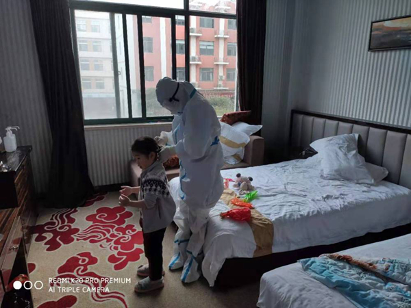 一大家子被隔離,兩個孩子不能丟在家里沒人管,這給安慶市迎江區疫情防控指揮部安置組出了道難題?!罢l來照顧已是密切接觸者的兩個年幼的孩子呢?”安慶市迎江區濱江街道黨工委書記趙明來告訴記者,大家商議之后,決定把兩個小家伙送到隔離醫學觀察點,由專業的醫護人員照顧。