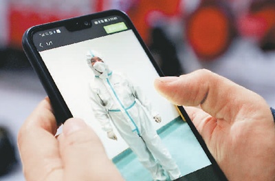 張欣正在看他的父親——復(fù)旦大學(xué)附屬上海浦東醫(yī)院呼吸科發(fā)熱門(mén)診醫(yī)生張弢從抗疫一線發(fā)來(lái)的短視頻。