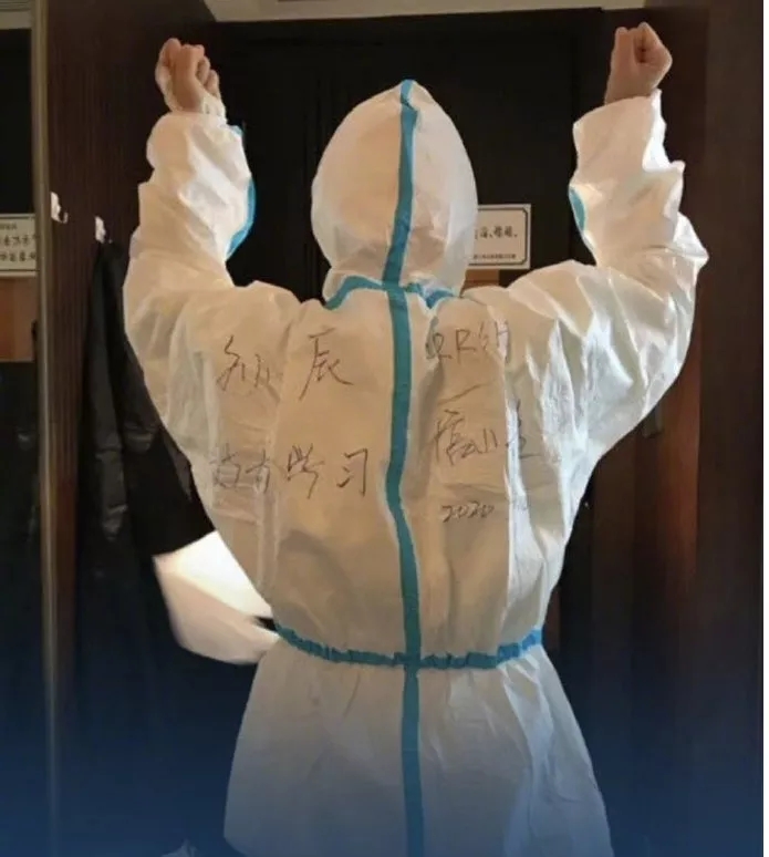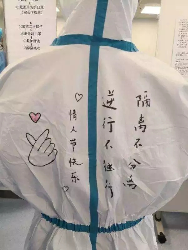 在防護(hù)服上寫(xiě)下的