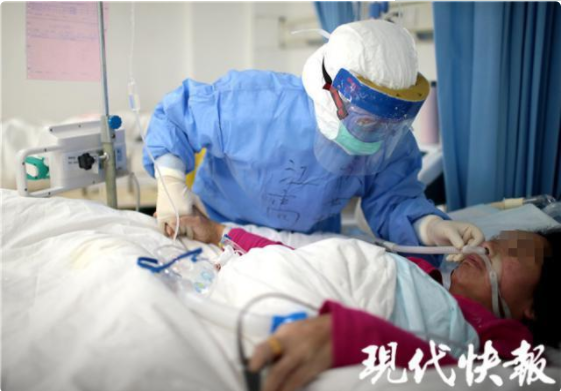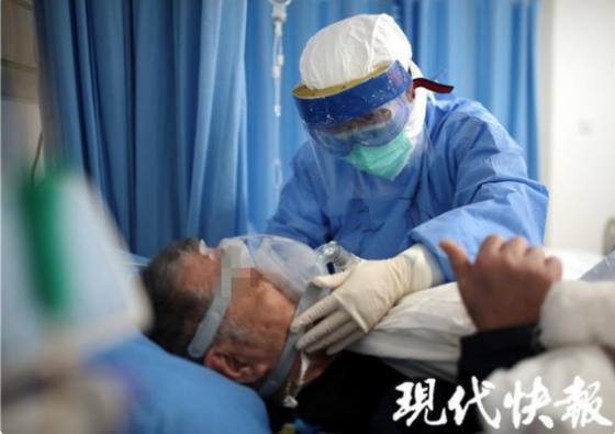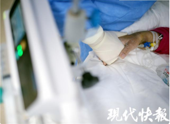 2月18日下午,現代快報記者走進“紅區”——重癥隔離病房里,用鏡頭記錄下一組組“我和你”的故事。