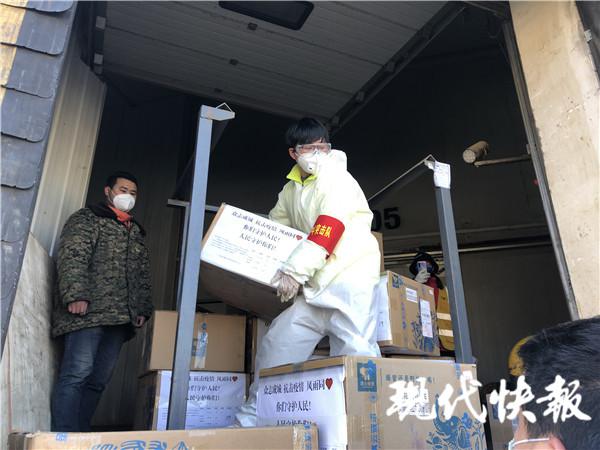 加入了洪山區(qū)志愿者之后,我們有了 " 洪山青年突擊隊(duì) " 的袖章。2 月 17 日,洪山區(qū)有 6 噸物資要送往武漢科技會(huì)展中心方艙醫(yī)院,我在群里發(fā)了消息之后,一下子 20 多輛車從武漢的各個(gè)地方開往倉庫,然后一車一車運(yùn)往醫(yī)院。我等紅綠燈的時(shí)候,旁邊一輛軍車內(nèi)的小哥哥把車窗搖下來,向我敬了一個(gè)軍禮,一瞬間,我覺得很鼓舞。