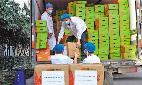 2月22日,湖北省武漢市江漢區(qū)武漢協(xié)和醫(yī)院,醫(yī)院工作人員在搬運云南捐贈的物資。各地捐贈物資為武漢抗擊新冠肺炎疫情提供了物資保障。本報記者 高興貴攝