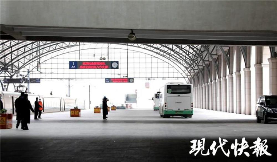 1 點(diǎn) 10 分,一列動(dòng)車緩緩?fù)?吭谖錆h漢口火車站,醫(yī)療隊(duì)從車上搬下了二三十箱防護(hù)物資。