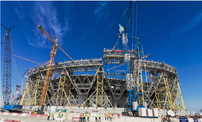 中國鐵建所屬鐵建國際攜手中小企業(yè)精誠合作共克時艱,帶動產(chǎn)業(yè)鏈發(fā)展。中國鐵建盧賽爾體育場項目是中國企業(yè)首次以設(shè)計施工總承包身份參建的世界足聯(lián)最高標準專業(yè)足球場,是目前中國企業(yè)在海外建造的規(guī)模最大、容納人數(shù)最多的專業(yè)體育場館。近日,在中國鐵建的協(xié)調(diào)、幫助下,精工鋼構(gòu)集團復工后加快該項目建設(shè)進度,目前已逐步恢復正常產(chǎn)能。在卡塔爾盧賽爾體育場壓環(huán)吊裝期間,派出了20多名管理、大型構(gòu)件吊裝、安裝技術(shù)專家增援該項目,陸續(xù)從國內(nèi)派駐工人千余人次。
