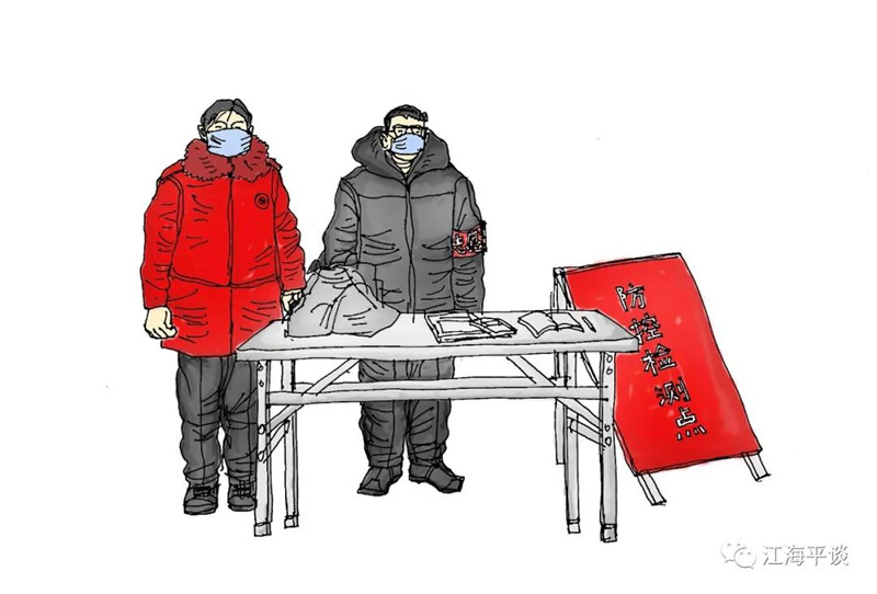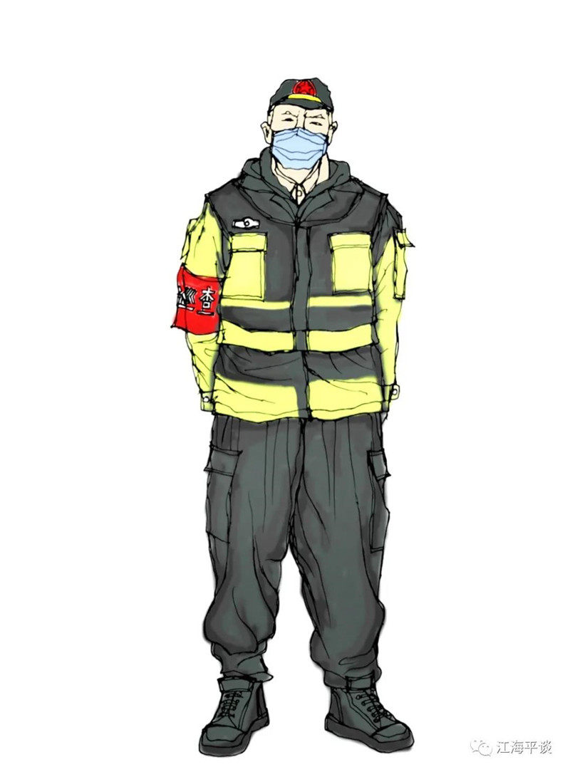 我用速寫的形式,把自己每天看到聽到的最動(dòng)人的故事或場景記錄下來,組成了一幅幅“防控抗疫”的群英圖譜,特別是那些奮戰(zhàn)在一線的廣大醫(yī)務(wù)工作者以及在街頭巷尾,社區(qū)民宅忘我工作、無私奉獻(xiàn)的街道干部和志愿者是我描繪的主要對象。雖然,他們都是普普通通的人,但他們都做出了不平凡的事。他們是這個(gè)時(shí)代真正的英雄,也是這個(gè)時(shí)代最可愛的人!