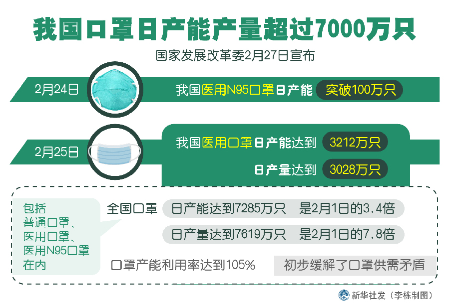 我國口罩日產(chǎn)能產(chǎn)量超過7000萬只-新華網(wǎng)