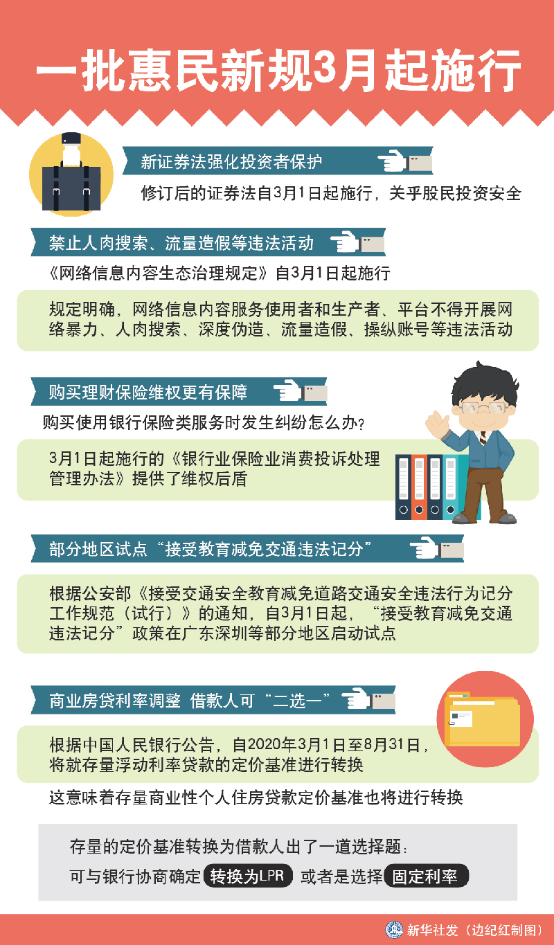 新華社北京2月28日電 題:證券投資、網絡治理、房貸利率……一批惠民新規3月起施行