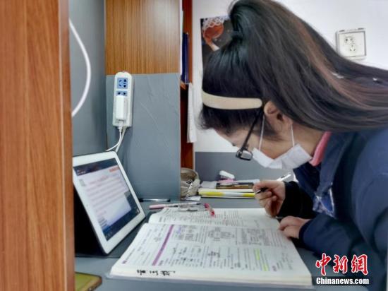 治愈出院患者在隔離點上網課。 安源 攝