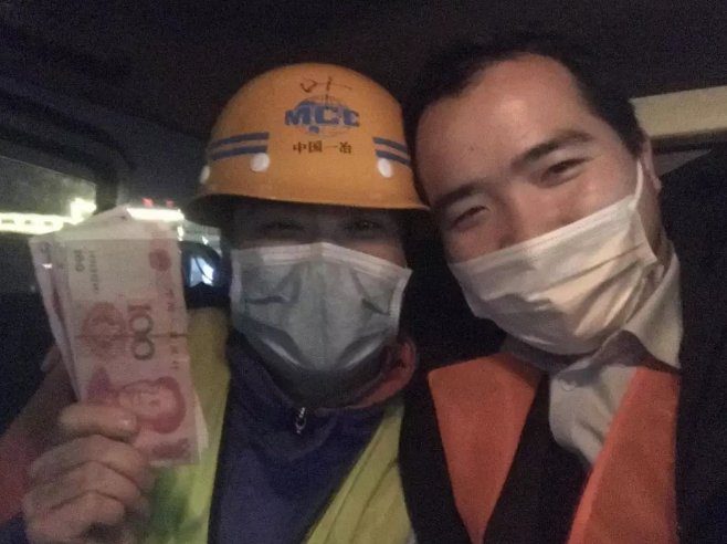 這張是在雷神山工地的一位大叔,拿到工資挺高興的,他說他要立馬轉回去給家里,讓家人去買菜。