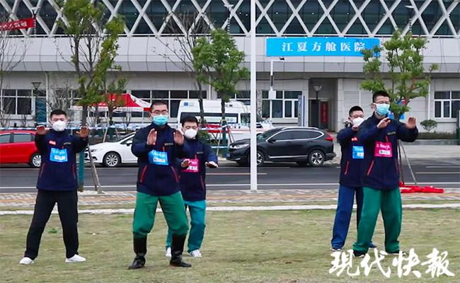 " 野馬分鬃、白鶴亮翅、手揮琵琶 ……"2 月 27 日上午,武漢江夏區(qū)大花山方艙醫(yī)院外的大草坪上,5 名男護士流暢地完成了一套 " 簡化六式太極操 " 演示。這次,他們不僅僅是在給方艙的患者教學,而是要錄制一條視頻,送給奮戰(zhàn)在抗疫一線的工作人員。