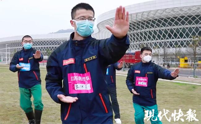 目前,這套 " 簡化六式太極操 " 教學視頻由國家中醫(yī)醫(yī)療隊江蘇隊和現(xiàn)代快報聯(lián)合制作完成,將向江蘇援湖北醫(yī)療隊 2804 名成員推廣。" 這條視頻,男護太極團是把六式太極操做了兩遍演示,醫(yī)護人員身體健康的情況下,打兩遍并不會感覺吃力。" 陸敏表示,希望這套太極操能廣為傳播,讓更多抗疫工作者、新冠肺炎患者都能學會,早日在 " 戰(zhàn)役 " 中獲勝。(特派記者 是鐘寅 / 文 張浩然 / 攝)