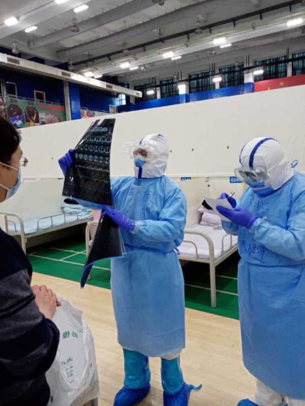 夫妻情深,家國(guó)在心。2月29日晚,穿戴好一層層厚厚的防護(hù)設(shè)備,顧國(guó)峰和戰(zhàn)友們走進(jìn)武漢漢陽一家方艙醫(yī)院隔離病區(qū)。“病區(qū)共收住61位輕癥患者,有一位發(fā)燒37.5度,其他無不適情況。查房、問詢、安慰、記錄病歷……由于層層防護(hù),要堅(jiān)持六小時(shí)不吃不喝,衣服干了濕濕了再干,稍不注意就覺得暈,因?yàn)槿毖酢!鳖檱?guó)峰告訴記者,“患者和其他人對(duì)我們很友好,豎起大拇指感謝、加油!每位患者背后都是一個(gè)牽掛的家庭,與其說是治病救人,更重要的是鼓勵(lì)和安慰!”