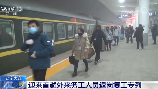 29日凌晨1時(shí)05分,由黑龍江省訥河開(kāi)往遼寧大連莊河的K4082次務(wù)工人員返崗復(fù)工專列順利到達(dá)莊河北站。這是遼寧大連迎來(lái)的首趟外來(lái)務(wù)工人員返崗復(fù)工專列,521名務(wù)工人員分別來(lái)自黑龍江訥河、齊齊哈爾等列沿線的兩省六市。