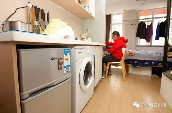 某長租公寓內,租客李苗在自己的房間內吃早飯。新華社記者譚慧婷 攝