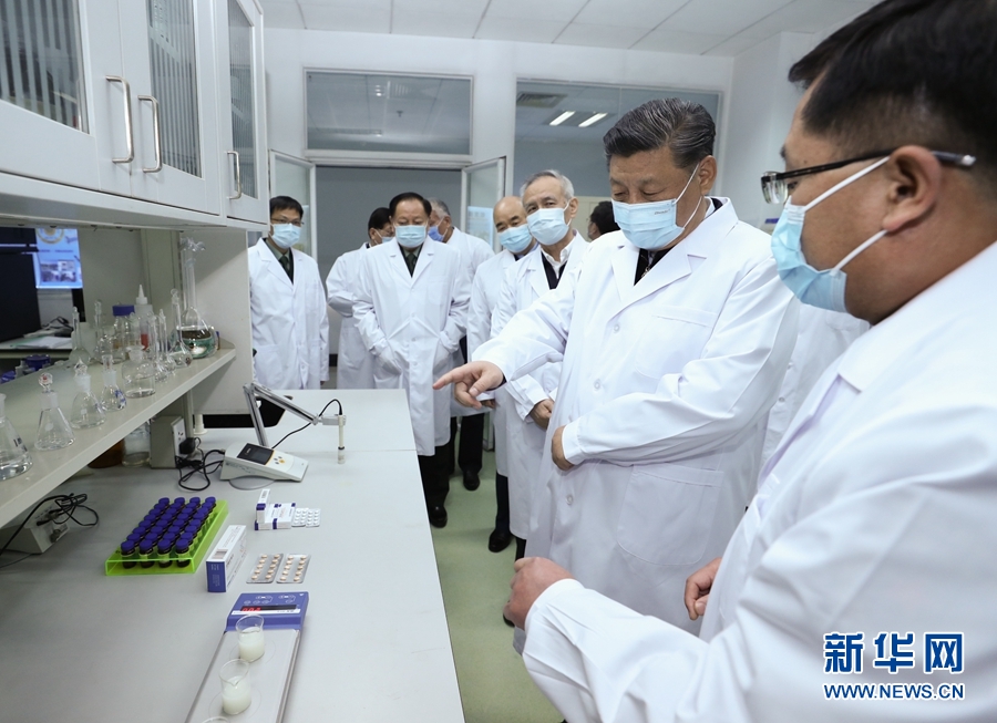 2日下午,習(xí)近平首先來到軍事醫(yī)學(xué)研究院,聽取研究院關(guān)于新冠肺炎疫情防控科研攻關(guān)的總體情況匯報(bào),結(jié)合展板和實(shí)物了解疫苗和抗體研制、藥物篩選、病毒致病機(jī)理研究、快速檢測(cè)試劑研究和應(yīng)用等進(jìn)展情況。在儀器測(cè)試樓,習(xí)近平察看了重大疫情應(yīng)急防控藥物研究室,向堅(jiān)守崗位、奮力攻關(guān)的一線專家和科研人員表示親切慰問。他強(qiáng)調(diào),提高治愈率、降低病亡率,最終戰(zhàn)勝疫情,關(guān)鍵要靠科技。習(xí)近平指出,新冠肺炎疫情發(fā)生以來,軍事醫(yī)學(xué)研究院堅(jiān)決貫徹黨中央和中央軍委決策指示,聞令即動(dòng)、爭(zhēng)分奪秒,集中力量展開應(yīng)急科研攻關(guān),取得了階段性成果,充分展現(xiàn)了人民軍隊(duì)忠于黨、忠于人民的政治本色和敢打硬仗、善打勝仗的優(yōu)良作風(fēng)。習(xí)近平希望他們?cè)俳釉賲枺浞职l(fā)揮突擊隊(duì)和主力軍作用,盡快研制出安全有效的疫苗、藥物、檢測(cè)試劑,全力滿足抗擊疫情需要。要堅(jiān)持在疫情可溯、可診、可防、可治、可控方面合力攻關(guān),通過打這場(chǎng)硬仗,掌握更多具有自主知識(shí)產(chǎn)權(quán)的核心科技,拿出更多硬核產(chǎn)品,為維護(hù)人民生命安全和身體健康、維護(hù)國家戰(zhàn)略安全作出更大貢獻(xiàn)。