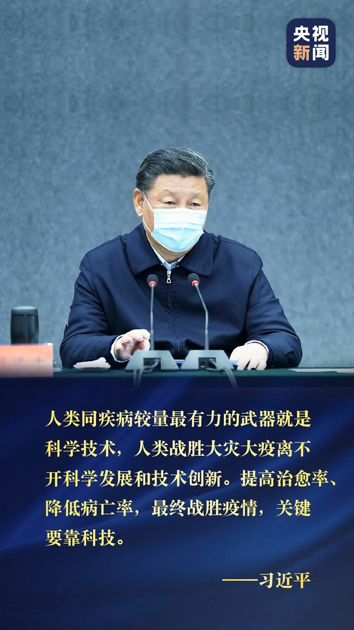 1.人類同疾病較量最有力的武器就是科學技術,人類戰勝大災大疫離不開科學發展和技術創新。 提高治愈率、降低病亡率,最終戰勝疫情,關鍵要靠科技。 當前,打贏疫情防控人民戰爭、總體戰、阻擊戰還需要付出艱苦努力。 越是面對這種情況,越要堅持向科學要答案、要方法。