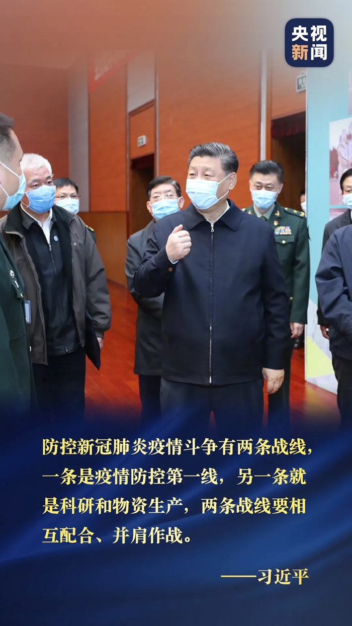 防控新冠肺炎疫情斗爭有兩條戰線,一條是疫情防控第一線,另一條就是科研和物資生產,兩條戰線要相互配合、并肩作戰。